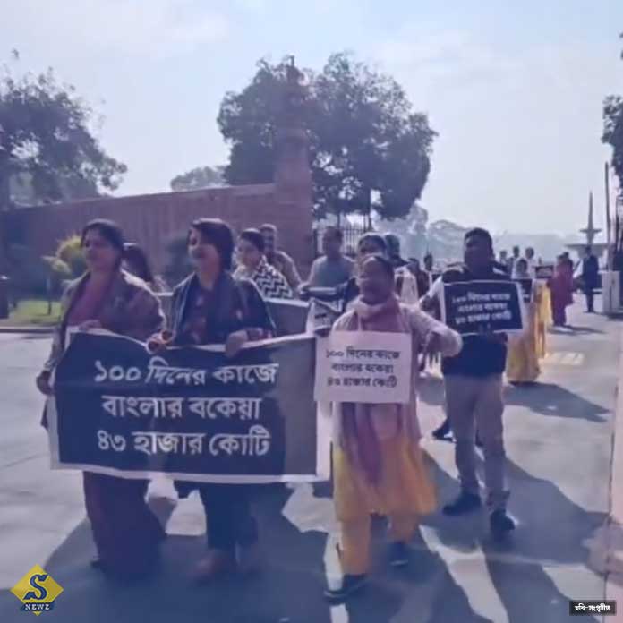 বাংলার ২ লাখ কোটি বকেয়া মেটানোর দাবিতে স্লোগান দিয়েছেন তাঁরা। পাশাপাশি আবাস, ১০০ দিনের কাজের বকেয়া টাকা মেটানোর দাবি তুলেছেন বিক্ষোভকারী সাংসদরা।