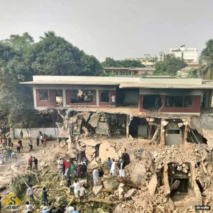 ভবনের বড় অংশ ভাঙার পর মানুষকে উল্লাস করতেও দেখা গিয়েছে। বুধবার ভার্চুয়ালি হাসিনার ভাষণ শুরুর আগেই সেই রোষ গিয়ে পড়ে ৩২ নম্বর ধানমন্ডির বাড়িতে। মুজিবের বাড়িতে তাণ্ডব, ভাঙচুর চালায় জনতা। পরে সেখানে অগ্নিসংযোগ করা হয়।এর পর বেশি রাতের দিকে বুলডোজোর, ক্রেন, ভ্যাকুয়ম মেশিন নিয়ে আসা হয়। শুরু হয় মুজিবের স্মৃতি জড়ানো ৩২ নম্বর ধানমন্ডির বাড়ি ভাঙার কাজ। ৫ অগাস্টের পর আবারও ফেব্রুয়ারিতে বাংলাদেশে জনতার নিশানার মুখে বঙ্গবন্ধু শেখ মুজিবুর রহমান, শেখ হাসিনা সহ আওয়ামী লিগ নেতৃত্ব। বুলডোজার, ক্রেন এনে ৩২ নম্বর ধানমন্ডি গুঁড়িয়ে দিয়েও রোষ মেটেনি বাংলাদেশের বিক্ষোভকারীদের। বুধবার রাত থেকেই দেশের বিভিন্ন প্রান্তে শুরু হয়ে গিয়েছে উন্মত্ত জনতার হামলা। নিশানায় জাতির জনক শেখ মুজিবুর রহমান, তাঁর কন্যা হাসিনা-সহ আওয়ামী লীগের নেতারা। ভাঙচুর অগ্নিসংযোগের পাশাপাশি চলছে দেদার লুটপাটও। ধানমন্ডির ৫/এ-তে হাসিনার বাড়ি সুধা সদনেও আগুন ধরিয়ে দেওয়া হয় বুধবার রাতে। প্রত্যক্ষদর্শীরা জানান, রাতে সাড়ে ১০টার পরে ধানমন্ডিতে হাসিনার বাসভবনে আগুন ধরিয়ে দেন কয়েক জন। রাজধানী ঢাকার অদূরে সাভারের জাহাঙ্গিরনগর বিশ্ববিদ্যালয়ে বুধবার রাতে বঙ্গবন্ধু মুজিব এবং হাসিনার ম্যুরাল ভেঙে দেন একদল বিক্ষোভকারী। সেখানকার আল বেরুনী হলের দেয়ালে আঁকা বঙ্গবন্ধুর গ্রাফিতিও রং দিয়ে মুছে দেন বৈষম্যবিরোধী ছাত্র আন্দোলনের নেতা-কর্মীরা। খুলনার ময়লাপোতা এলাকায় ভেঙে দেওয়া হয়েছে শেখ বাড়ি। সেটি ছিল হাসিনার কাকার বাড়ি। কুষ্টিয়ায় বুলডোজার চলেছে প্রাক্তন আওয়ামী লীগ সাংসদ মাহবুব উল আলম হানিফের বাড়িতে। হামলাকারীদের দাবি, আওয়ামী লীগকে নিষিদ্ধ ঘোষণা করতে হবে। এদিকে, নোয়াখালীতে আওয়ামী লীগের সাধারণ সম্পাদক ওয়াবদুল কাদেরের বাড়িতেও হামলা চালানো হয়েছে। ঢাকার বাইরে রাজশাহী, খুলনা, চট্টগ্রাম, বরিশাল, রংপুর, সিলেটেও রাতভর মুজিবকে মুছে ফেলার কাজ চলেছে।