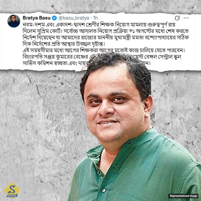 শিক্ষামন্ত্রী লিখেছেন নবম-দশম, একাদশ-দ্বাদশে শিক্ষক নিয়োগ মামলায় গুরুত্বপূর্ণ রায় দিয়েছে সুপ্রিম কোর্ট। সর্বোচ্চ আদালত নিয়োগ প্রক্রিয়া ৩১ অগাস্টের মধ্যে শেষ করতে নির্দেশ দিয়েছে যা মুখ্যমন্ত্রীর সঠিক দিক নির্দেশের প্রতি আস্থার উজ্জ্বল দৃষ্টান্ত।