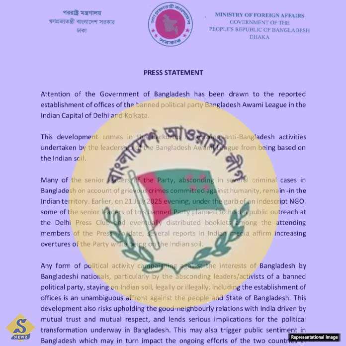বিবৃতিতে বলা হয়েছে, মানবতাবিরোধী অপরাধে দণ্ডিত ও ফৌজদারি মামলার পলাতক আওয়ামী লিগের একাধিক নেতা এখনও ভারতে অবস্থান করছেন। এদের মধ্যে কয়েকজন ২১ জুলাই দিল্লি প্রেস ক্লাবে একটি এনজিওর ব্যানারে সভা করার চেষ্টা করেন এবং উপস্থিত সাংবাদিকদের মধ্যে প্রচারপত্র বিতরণ করেন। বিষয়টি ভারতীয় সংবাদমাধ্যমে প্রকাশিত হয়েছে।