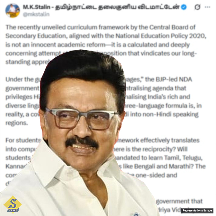 তামিলনাড়ুর মুখ্যমন্ত্রী ও ডিএমকে প্রধান এম কে স্ট্যালিন কেন্দ্রীয় শিক্ষা বোর্ড সিবিএসই-র নতুন পাঠ্যক্রম কাঠামো নিয়ে তীব্র সমালোচনা করেছেন। শনিবার তিনি এই নীতিকে পরিকল্পিত ভাষাগত চাপিয়ে দেওয়ার প্রয়াস বলে অভিহিত করে দাবি করেন, এর মাধ্যমে হিন্দিকে অগ্রাধিকার দিয়ে আঞ্চলিক ভাষাগুলিকে উপেক্ষা করা হচ্ছে।