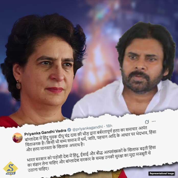 বাংলাদেশে সংখ্যালঘুদের প্রতি আচরণ নিয়ে উদ্বেগ প্রকাশ করেছেন কংগ্রেস নেত্রী ও সাংসদ প্রিয়াঙ্কা গান্ধী এবং অন্ধ্রপ্রদেশের উপ-মুখ্যমন্ত্রী পবন কল্যাণ। কেন্দ্র সরকারের উপরে চাপ বাড়িয়ে প্রিয়াঙ্কা গান্ধী এক্স হ্যান্ডেলে বলেছেন, বাংলাদেশে একদল জনতার হাতে হিন্দু যুবক দীপুচন্দ্র দাসের নৃশংস হত্যার খবর অত্যন্ত বিরক্তিকর। প্রিয়াঙ্কা গান্ধী বলেছেন, কেন্দ্রীয় সরকারের উচিত বাংলাদেশে হিন্দু, খ্রিস্টান এবং বৌদ্ধ সংখ্যালঘুদের বিরুদ্ধে ক্রমবর্ধমান হিংসার বিষয়টি লক্ষ্য করা। পাশাপাশি, এদের নিরাপত্তার বিষয়টি নিশ্চিত করতে ঢাকাকে চাপ দিতে হবে বলেও দাবি করেন তিনি। অন্যদিকে, অন্ধ্রপ্রদেশের উপ-মুখ্যমন্ত্রী পবন কল্যাণ এক্স হ্যান্ডেলে লিখেছেন, ইতিহাস আত্মত্যাগকে স্মরণ করে। কিন্তু, যে মাটি একসময় ভারতীয় রক্তে স্বাধীন হয়েছিল, তা আজ নিরীহ সংখ্যালঘুদের রক্তে রাঙা হচ্ছে। ১৯৭১ সালে, ভারতীয় সশস্ত্র বাহিনী নিপীড়িতদের পক্ষে দাঁড়িয়েছিল।