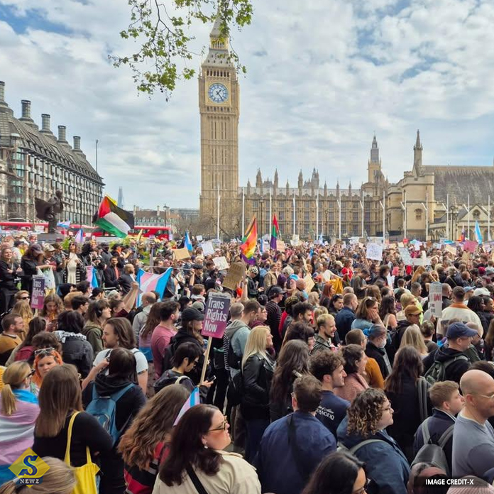 স্লোগানে স্লোগানে ছেয়ে গিয়েছে পার্লামেন্ট স্কোয়ার। ইংল্যান্ড, স্কটল্যান্ড ওবং ওয়েলসের মোট জনসংখ্যা সাড়ে ছয় কোটির কিছু বেশি। তাঁদের মধ্যে ১ কোটি ১৬ লক্ষ মানুষ রূপান্তরিত বা রূপান্তরকারী। এখনও পর্যন্ত সাড়ে আট হাজারারে বেশি লিঙ্গ পরিবর্তনের শংসাপত্র দিয়েছে সরকার।