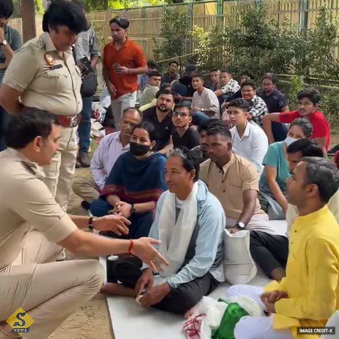 কিন্তু দুপুরে লাদাখ ভবনের সামনের অনশনস্থল থেকেই দিল্লি পুলিশের একটি দল বাস্তবের র্যাঞ্চোকে তুলে নিয়ে যায় থানায়। তাঁর সঙ্গে আরও ২০-২৫ জন আন্দোলনকারীকে পুলিশ তুলে নিয়ে গিয়েছে বলে অভিযোগ। প্রাথমিক ভাবে জানা গিয়েছে, দিল্লির মন্দির মার্গ থানায় নিয়ে যাওয়া হয়েছে তাদের।দিল্লি পুলিশের এক আধিকারিক জানিয়েছেন, লাদাখ ভবনের সামনে প্রতিবাদে বসার জন্য কোনও অনুমতি নেওয়া হয়নি। সেই কারণেই এই পদক্ষেপ।ওই পুলিশ আধিকারিক বলেন, তাঁরা যন্তর মন্তরের সামনে একটি প্রতিবাদ কর্মসূচিতে বসতে চেয়ে আবেদন জানিয়েছিলেন। সেটি এখনও বিবেচনা করে দেখা হচ্ছে। অন্য কোথাও প্রতিবাদে বসার জন্য তাদের অনুমতি দেওয়া হয়নি।এদিকে, সোনম ওয়াংচুকের সোশ্যাল মিডিয়ায় একটি ভিডিও শেয়ার করা হয়েছে। সেখানে দেখা যাচ্ছে দিল্লি পুলিশ একাধিক পুরুষ ও মহিলাকে এক প্রকার জোর করেই একটি বাসে তুলেছেন।