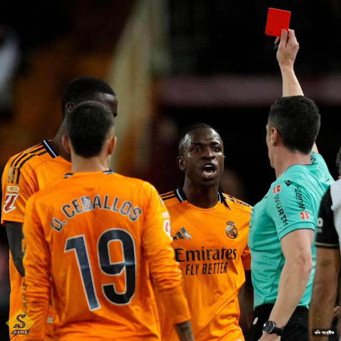 ক দিন আগে, গত সপ্তাহে ভ্যালেন্সিয়ার বিপক্ষে লাল কার্ড দেখেছিলেন ভিনিসিয়ুস জুনিয়র। শাস্তি স্বরূপ লা লিগায় আরও দু’ ম্যাচের নিষেধাজ্ঞা পেয়েছেন তিনি।