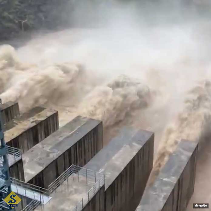 ভুটানের তালা জলবিদ্যুৎ প্রকল্পের বাঁধের ওপর দিয়ে জল উপচে বইছে। বহু জায়গায় আটকে পড়েছেন সাধারণ মানুষজন।